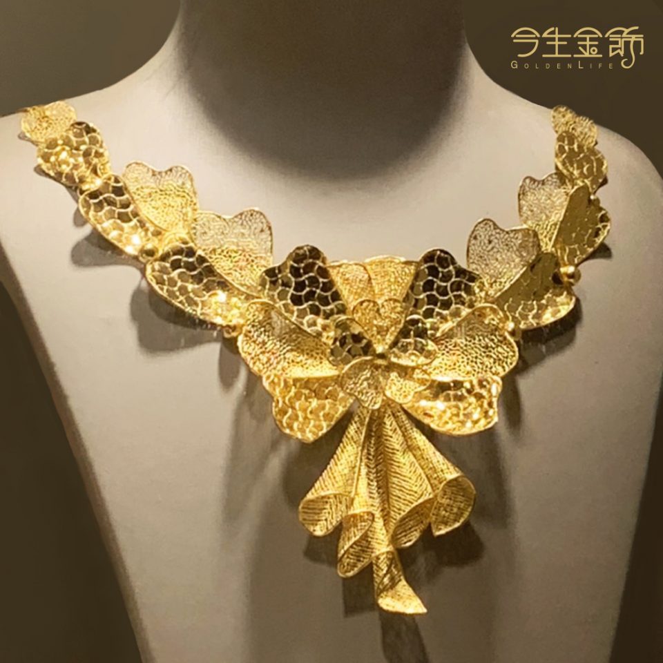 獨特的切割工藝,運用古老工具進行平行切割,讓黃金表面具如絲綢般的光澤。這項技術極複雜煩瑣,需要師傅工匠們耐心地將細若游絲的金絲一根根“編織”起來,完全手工製作,只要出一點錯,都必須從頭再來。