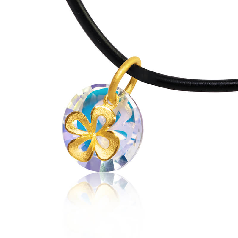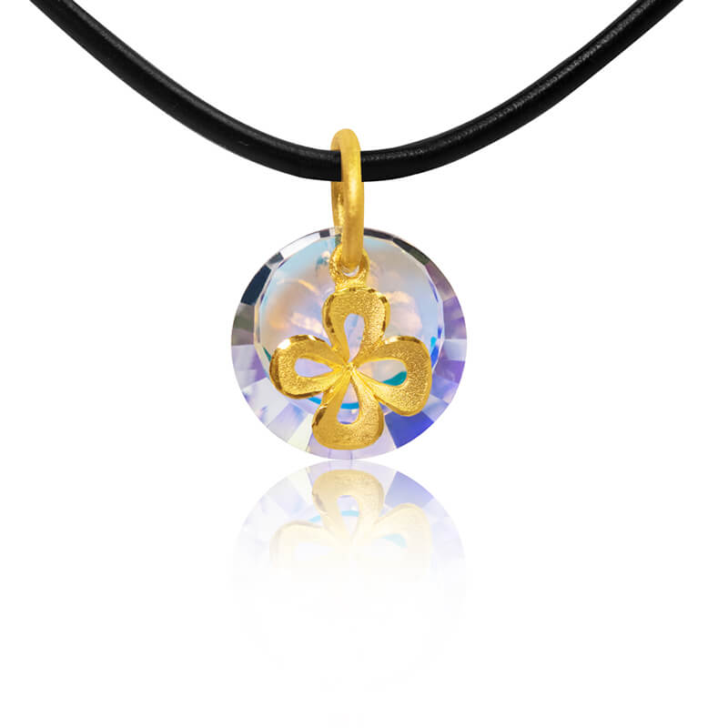 小巧精緻的七彩霓虹水晶,搭配簡單黃金四葉幸運草造型,此系列適合任何時刻作為贈禮,心意十足!(戀戀花意小墜)
