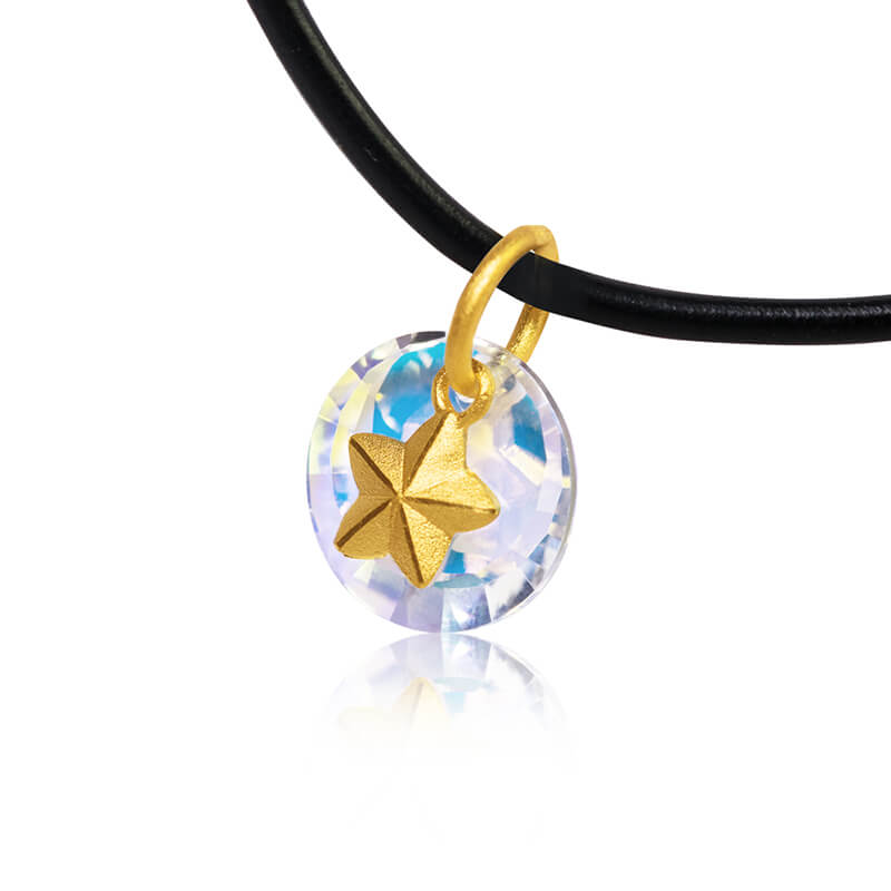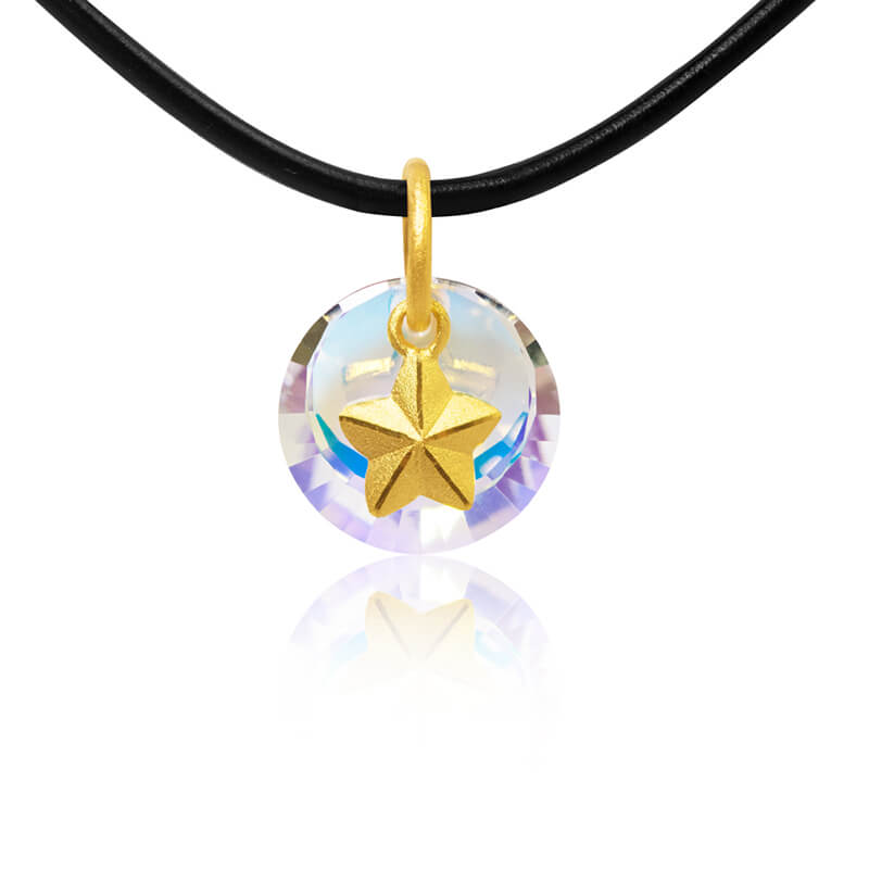 小巧精緻的七彩霓虹水晶,搭配簡單黃金五角星造型,此系列適合任何節慶送禮,心意十足!