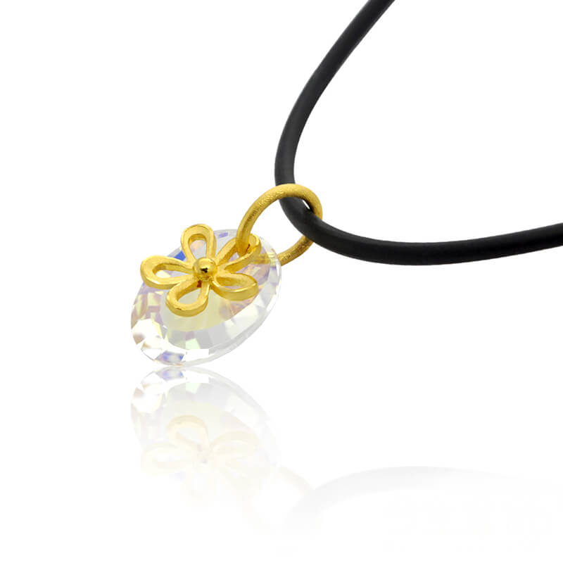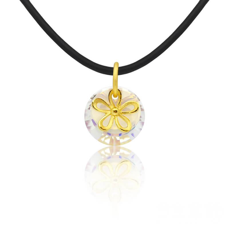 小巧精緻的七彩霓虹水晶,搭配簡單黃金簍空花朵造型,此系列適合任何節慶送禮,心意十足!