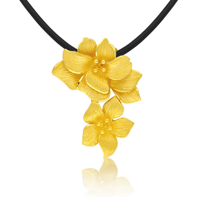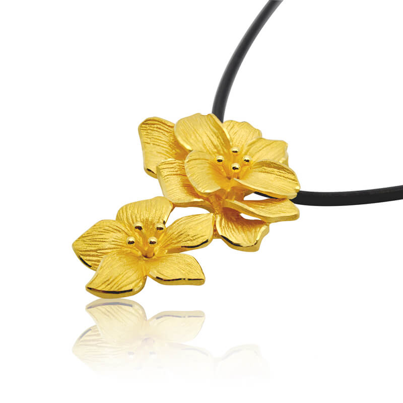 設計師塑造了荷花的造型,朵朵荷花相連,寓意合家歡樂,同時表達了對和諧愛情的美好祝愿。荷花是和平的象徵,寓意以和(荷)為貴,是尊嚴神聖的代表。荷花金飾顯示女人高潔、單純、典雅氣質。