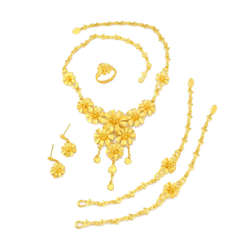 桂花象徵著崇高,美麗純潔,是愛情的象徵。朵朵花兒相連,簇擁成群,新娘佩戴盡顯如花一般的美麗動人。此系列黃金套組為婚嫁的必備金飾,極具傳世之價值,新娘佩戴盡顯高貴優雅、與眾不同的卓越風采!