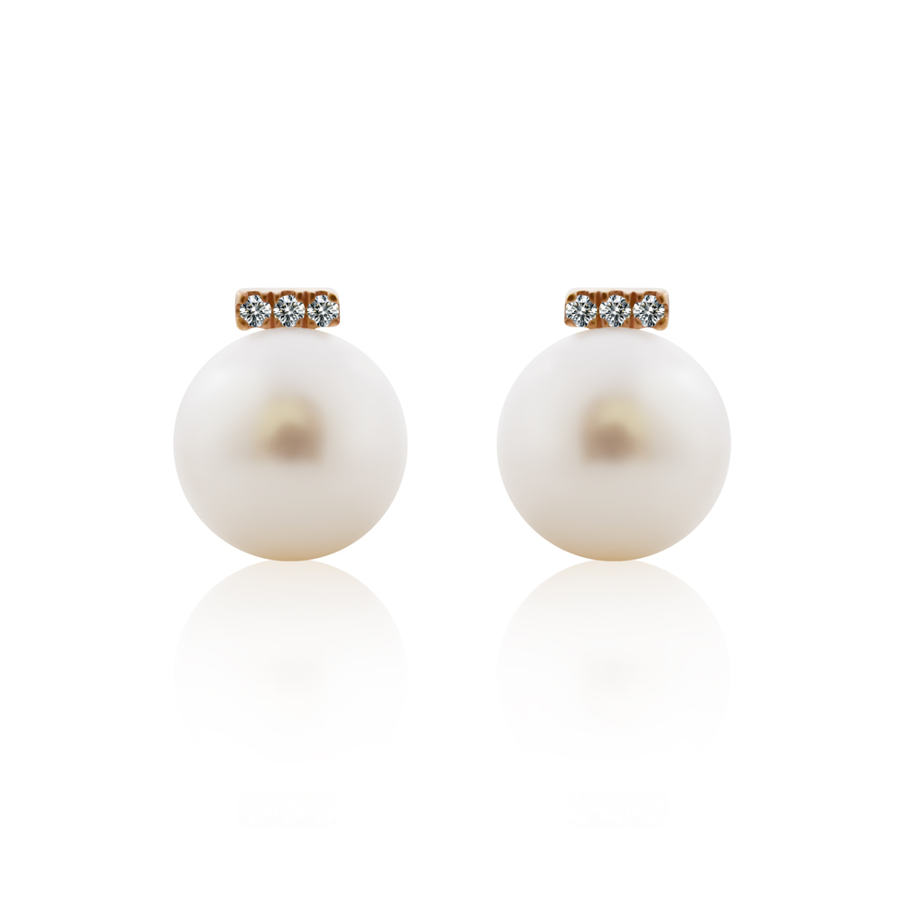 14K金(玫瑰金)+天然鑽石+天然珍珠